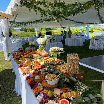 Our Crudité Platter is a fresh and colorful addition to any grazing table. Served on a 16" round platter, it features a vibrant assortment of seasonal fresh vegetables paired with flavorful hummus for dipping.